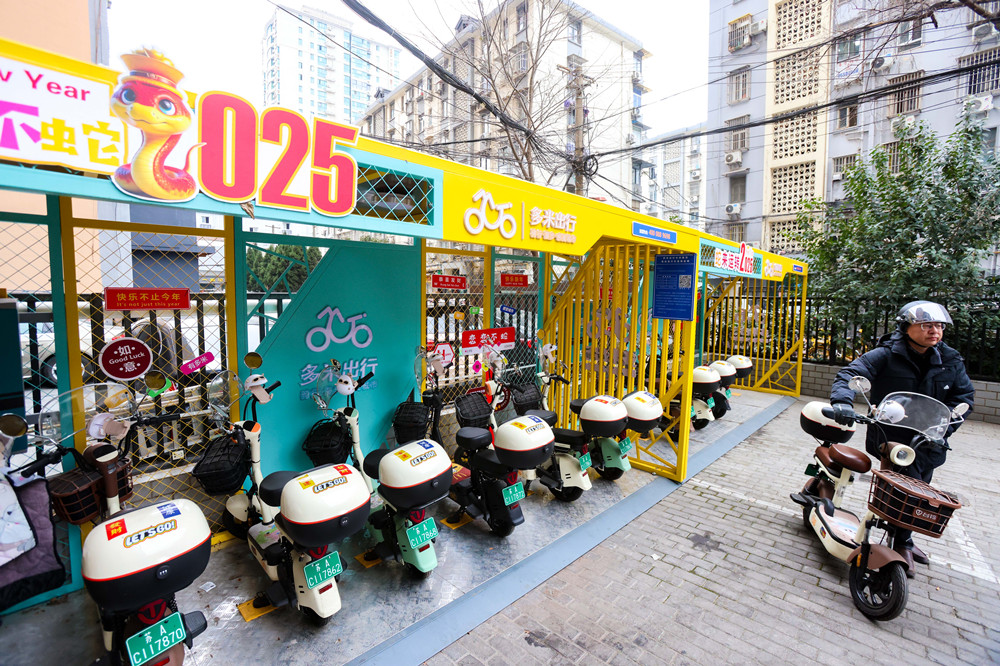 2月12日,位于中山東路西安門附近的一酒店門前,南京本地企業(yè)創(chuàng)新推出的主城區(qū)首個(gè)酒店端分時(shí)租賃電動(dòng)自行車服務(wù)項(xiàng)目落地運(yùn)行。