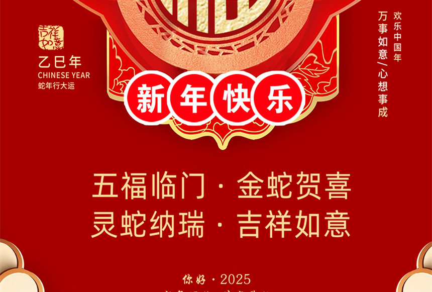 值此新春佳節(jié)來臨之際?,華展股份恭祝大家:蛇年吉祥,萬事如意,闔家幸福?,我們提前給大家拜年啦??!