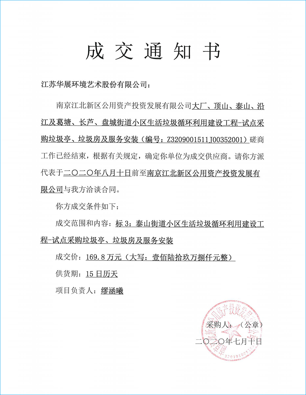 【中標(biāo)通知】江蘇省南京江北新區(qū)大廠、頂山、泰山、沿江及葛塘、長蘆、盤城街道小區(qū)生活垃圾循環(huán)利用建設(shè)工程-試點(diǎn)采購垃圾亭、垃圾房及服務(wù)安裝項(xiàng)目
